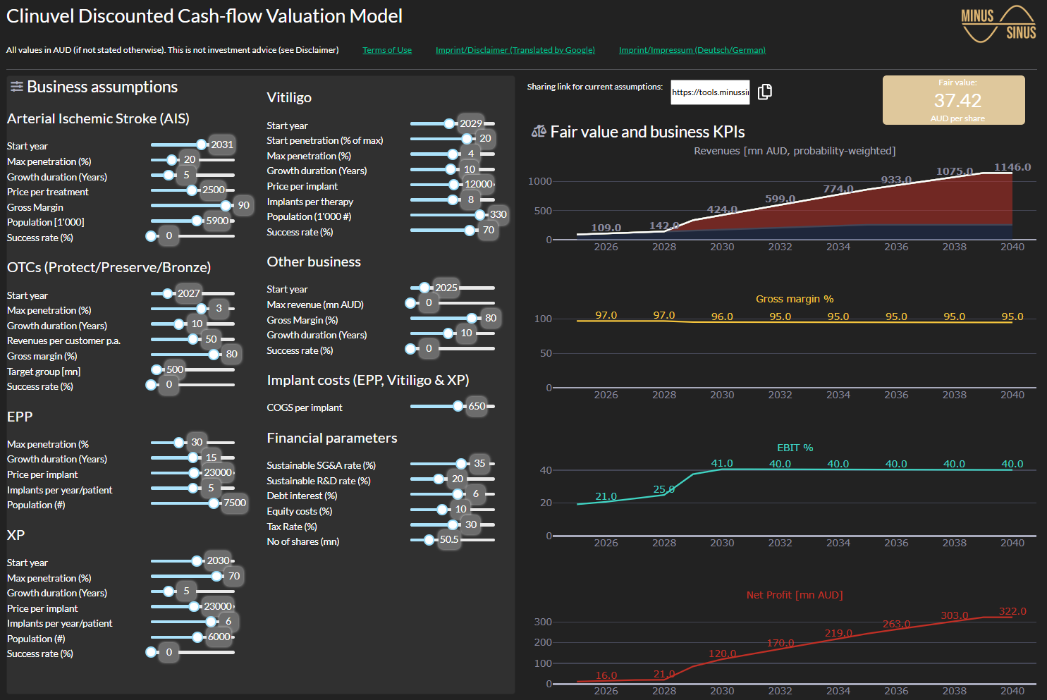 Ihr erinnert Euch vermutlich noch an das Clinuvel-Discounted-Cashflow Dashboard. Dies war bisher mit meinen Annahmen aus dem Februar 2023 gefüttert (Artikel hier).
